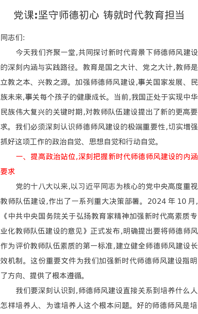 党课讲稿:坚守师德初心 铸就时代教育担当