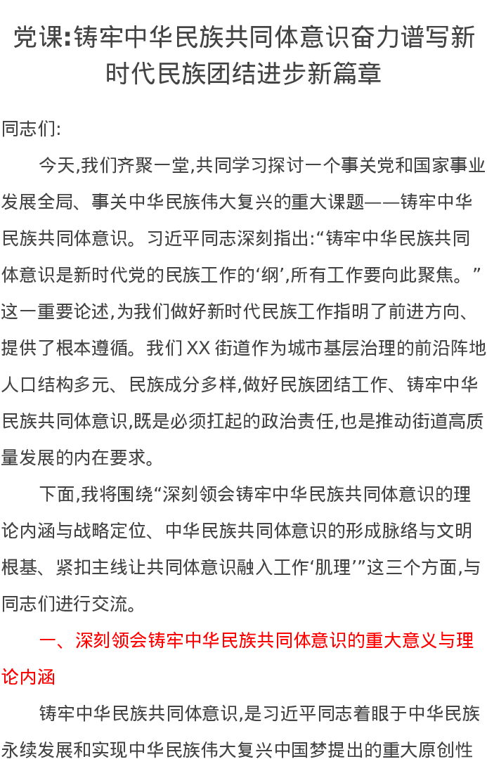 党课讲稿:铸牢中华民族共同体意识奋力谱写新时代民族团结进步新篇章