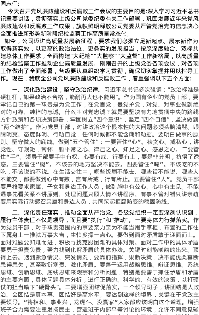 20220511国企书记在党风廉政建设和反腐败工作会议上的讲话
