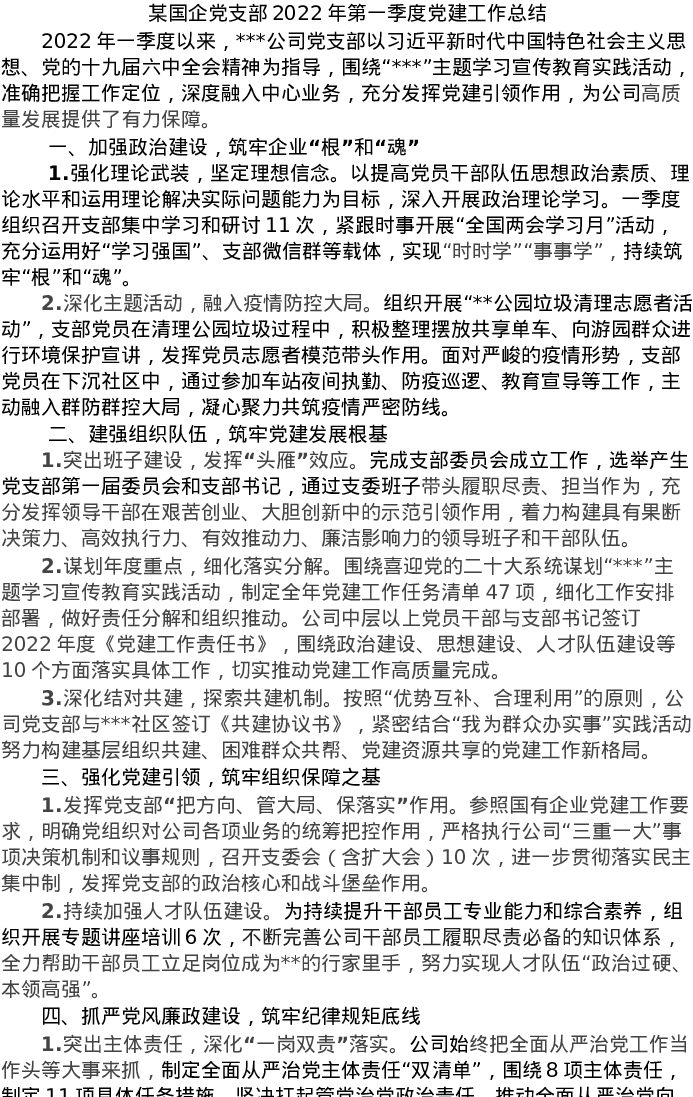 20220518某国企党支部2022年第一季度党建工作总结