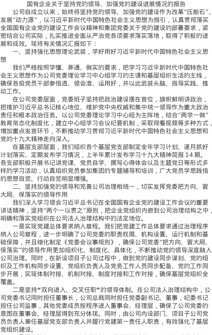 20220519国有企业关于坚持党的领导、加强党的建设进展情况的报告