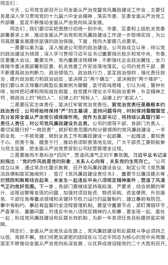 20220526国企全面从严治党暨党风廉政建设工作会上的讲话