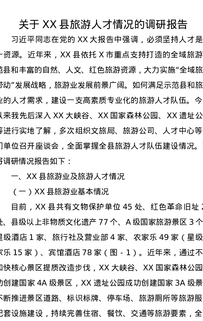 关于XX县旅游人才情况的调研报告