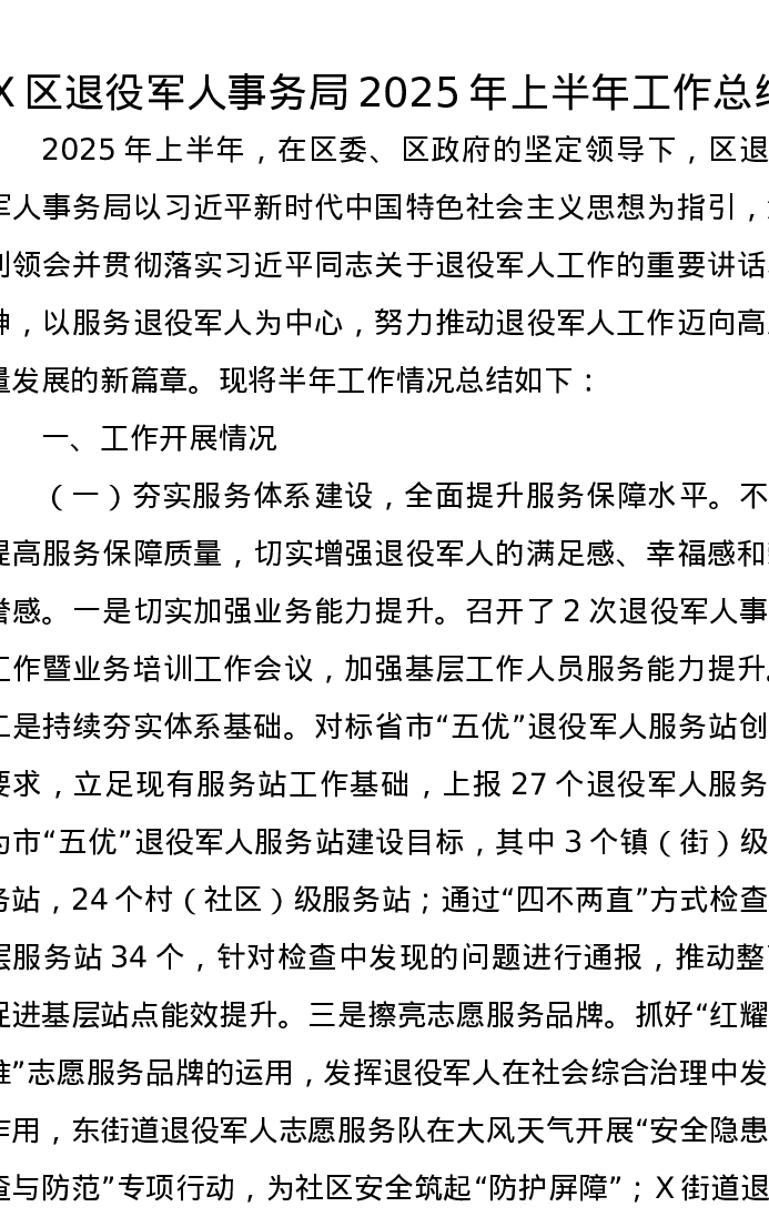 X区退役军人事务局2025年上半年工作总结