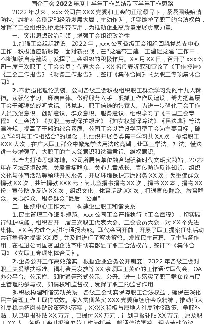 20220608国企工会2022年度上半年工作总结及下半年工作思路