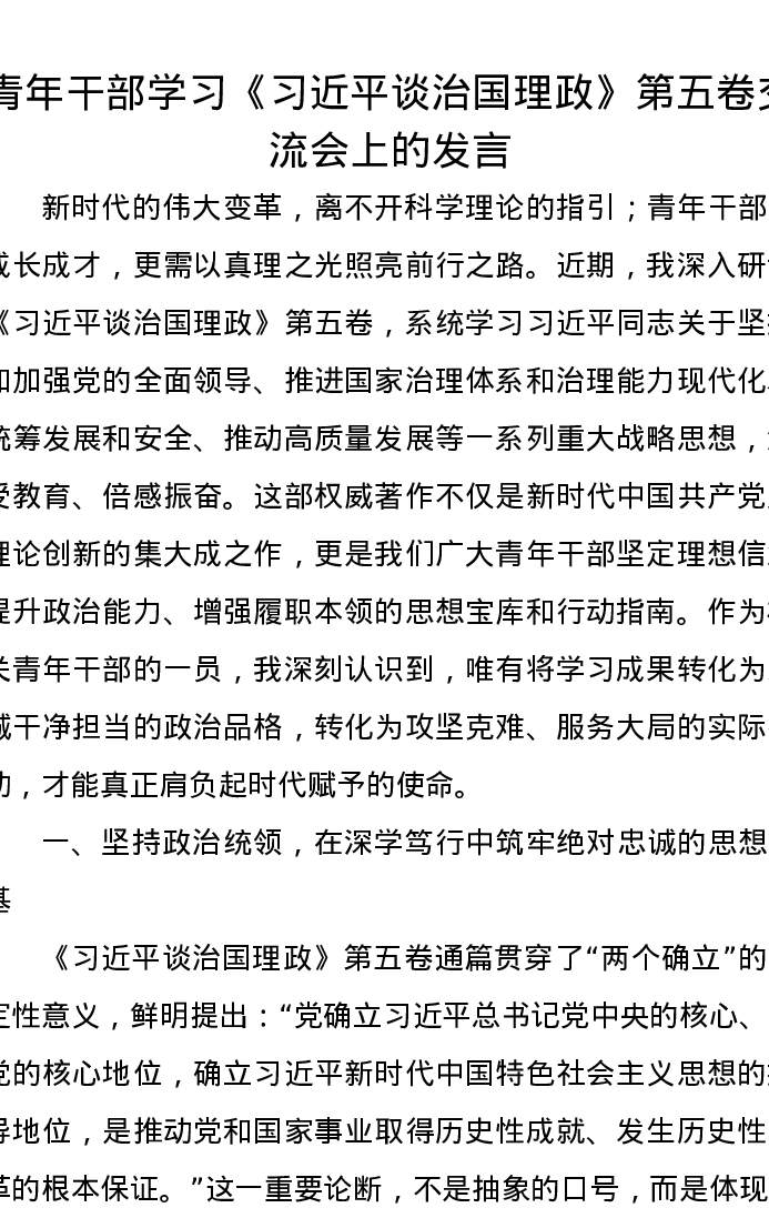 青年干部学习《习近平谈治国理政》第五卷交流会上的发言