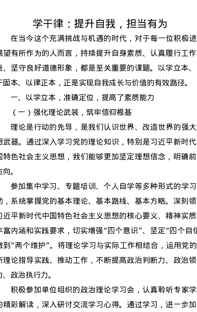 学干律发言:提升自我,担当有为