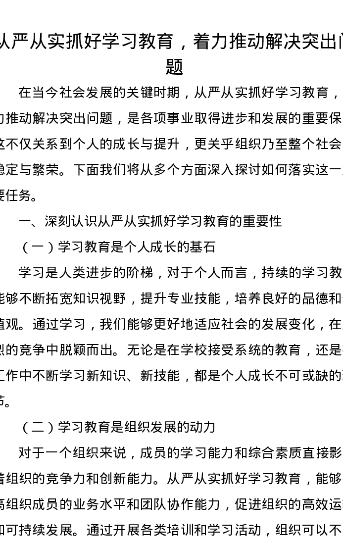 研讨发言:从严从实抓好学习教育,着力推动解决突出问题