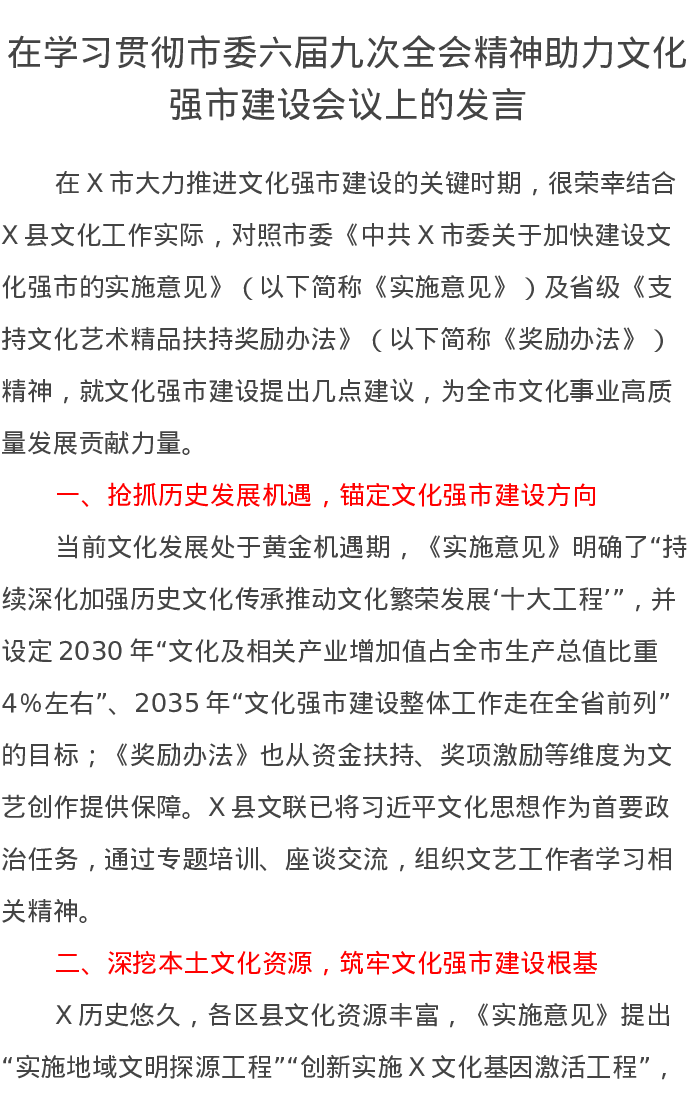 在学习贯彻市委六届九次全会精神助力文化强市建设会议上的发言