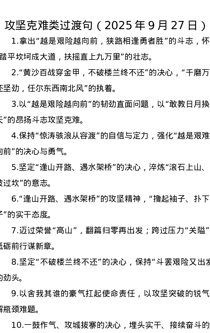 攻坚克难类过渡句(2025年9月27日)
