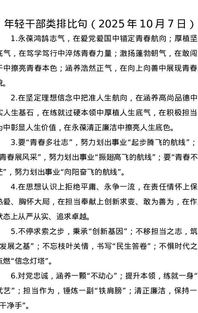 年轻干部类排比句(2025年10月7日)