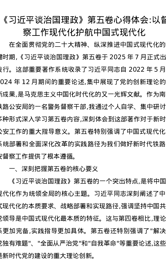 《习近平谈治国理政》第五卷心得体会:以督察工作现代化护航中国式现代化