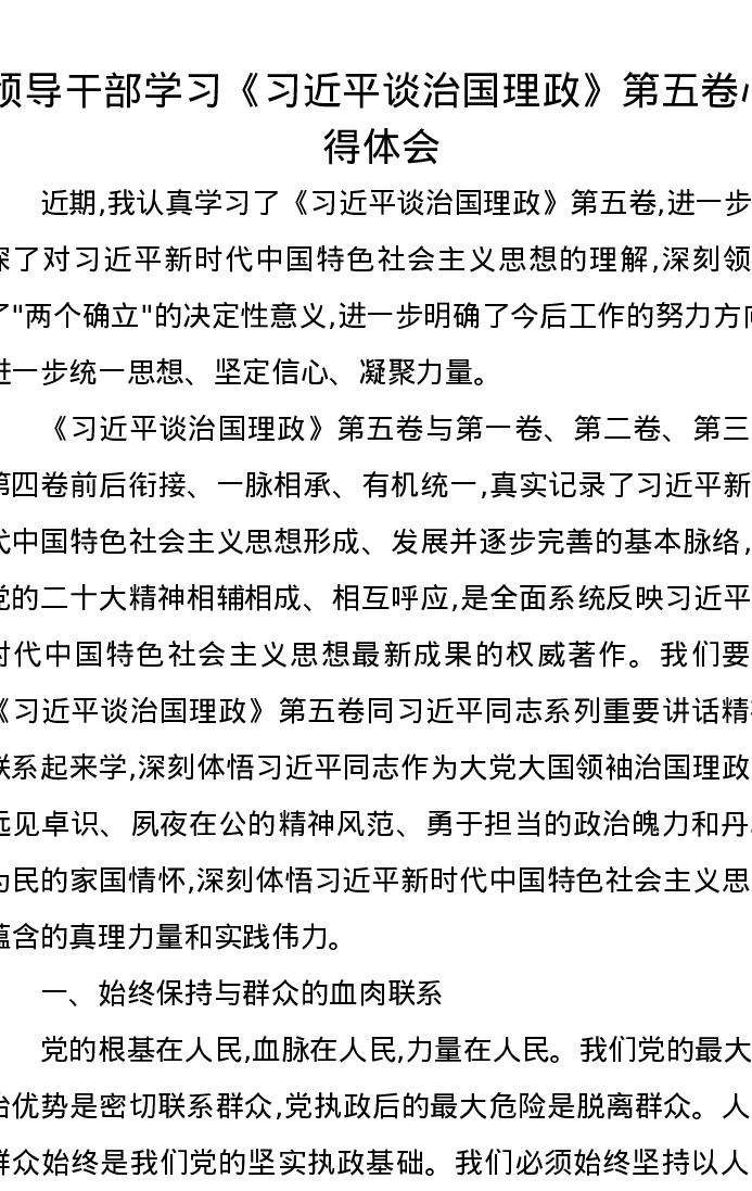 领导干部学习《习近平谈治国理政》第五卷心得体会
