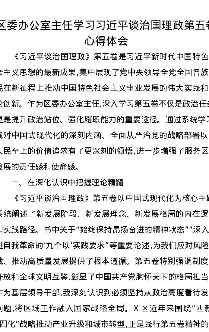 区委办公室主任学习〈习近平谈治国理政〉第五卷心得体会