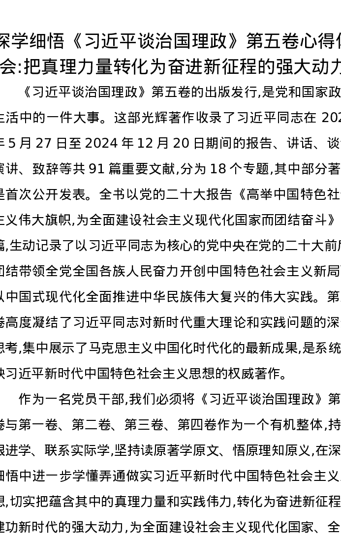 深学细悟《习近平谈治国理政》第五卷心得体会把真理力量转化为奋进新征程的强大动力