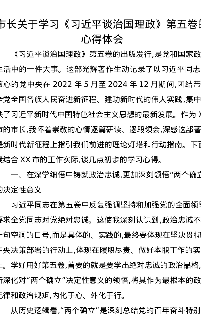 市长关于学习《习近平谈治国理政》第五卷的心得体会
