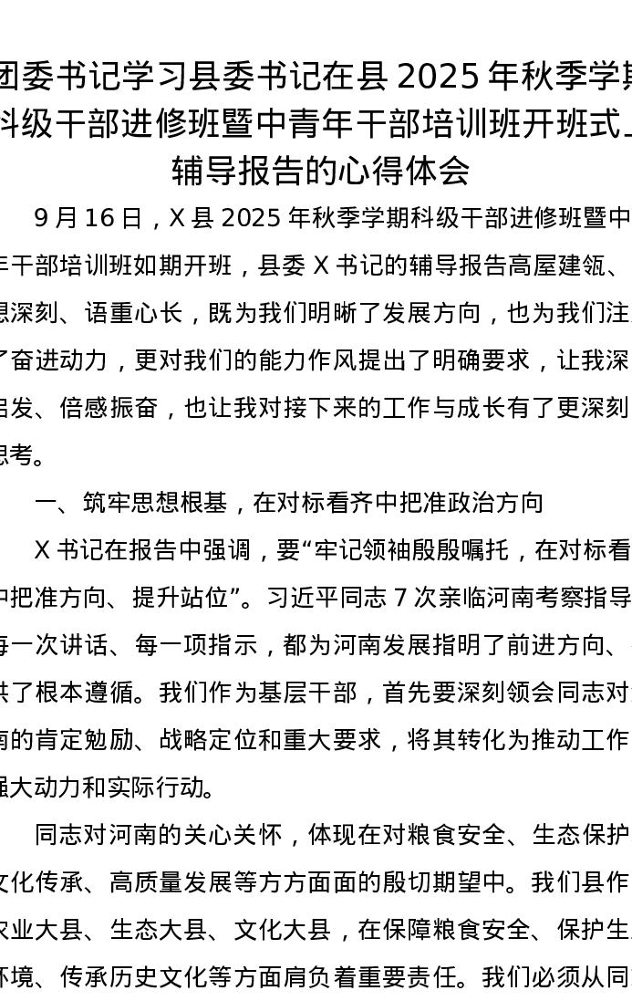 团委书记学习县委书记在县2025年秋季学期科级干部进修班暨中青年干部培训班开班式上辅导报告的心得体会