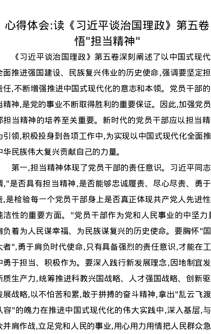 心得体会读《习近平谈治国理政》第五卷悟担当精神