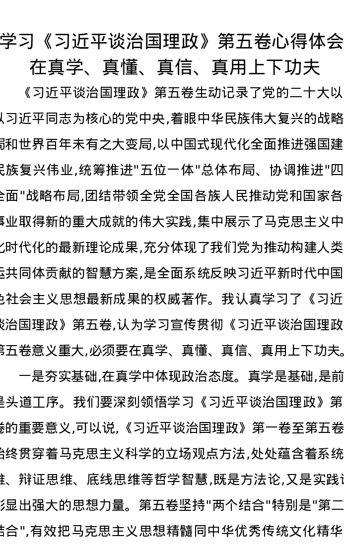 学习《习近平谈治国理政》第五卷心得体会:在真学、真懂、真信、真用上下功夫