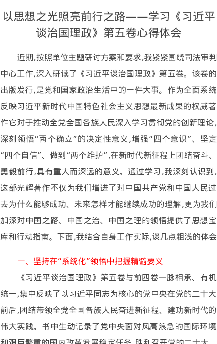 以思想之光照亮前行之路——学习《习近平谈治国理政》第五卷心得体会