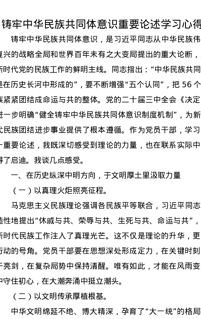 铸牢中华民族共同体意识重要论述学习心得