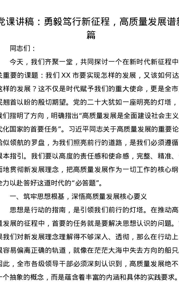党课讲稿:勇毅笃行新征程,高质量发展谱新篇