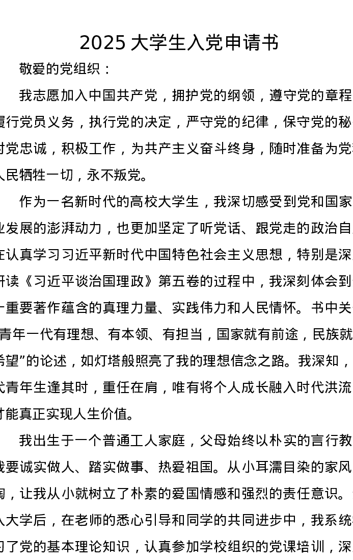 2025大学生入党申请书