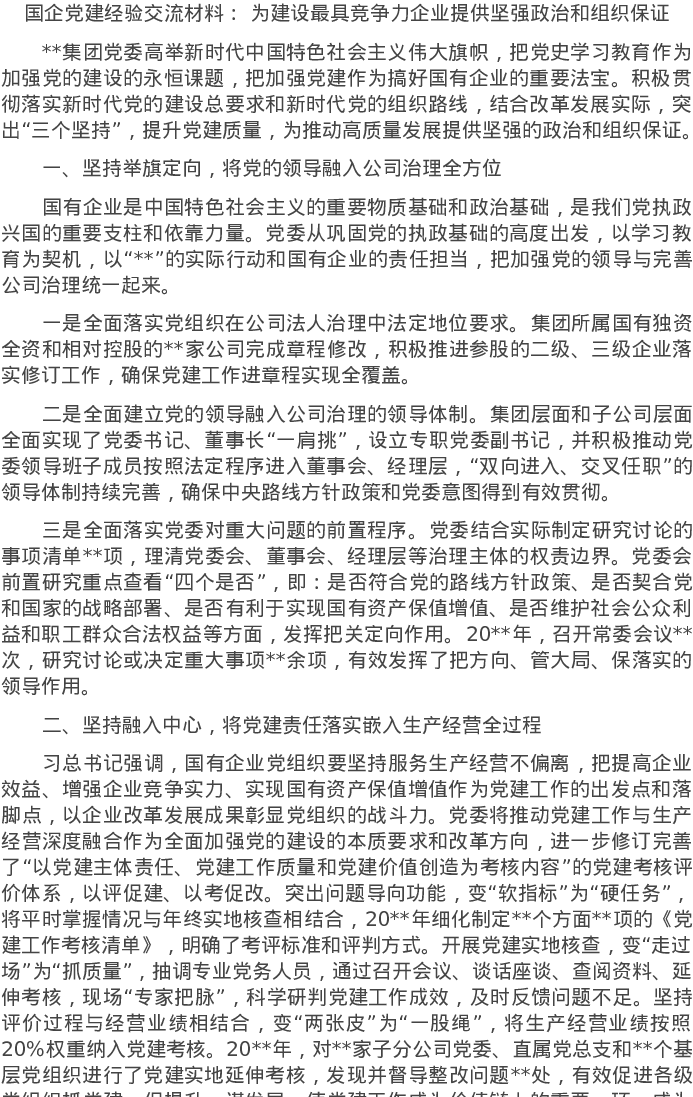 20220712国企党建经验交流材料: 为建设最具竞争力企业提供坚强政治和组织保证