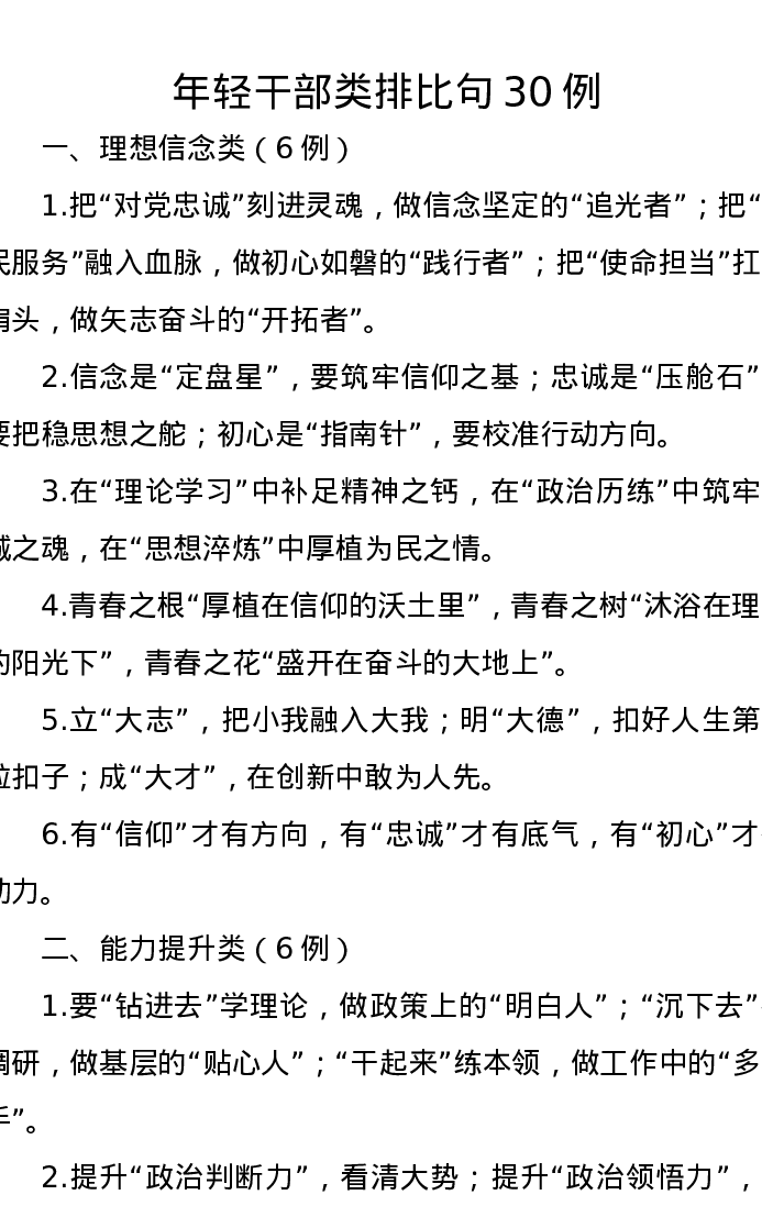 年轻干部类排比句30例