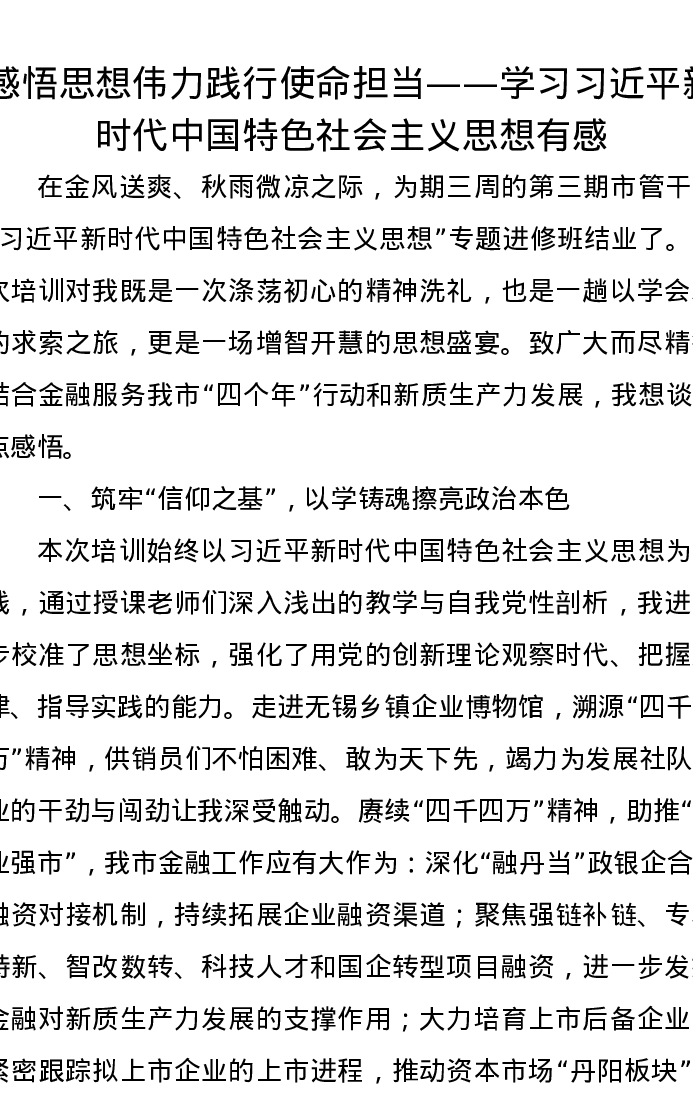 感悟思想伟力践行使命担当——学习习近平新时代中国特色社会主义思想有感心得