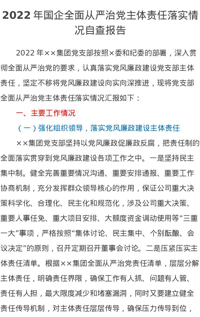202207172022年国企全面从严治党主体责任落实情况自查报告