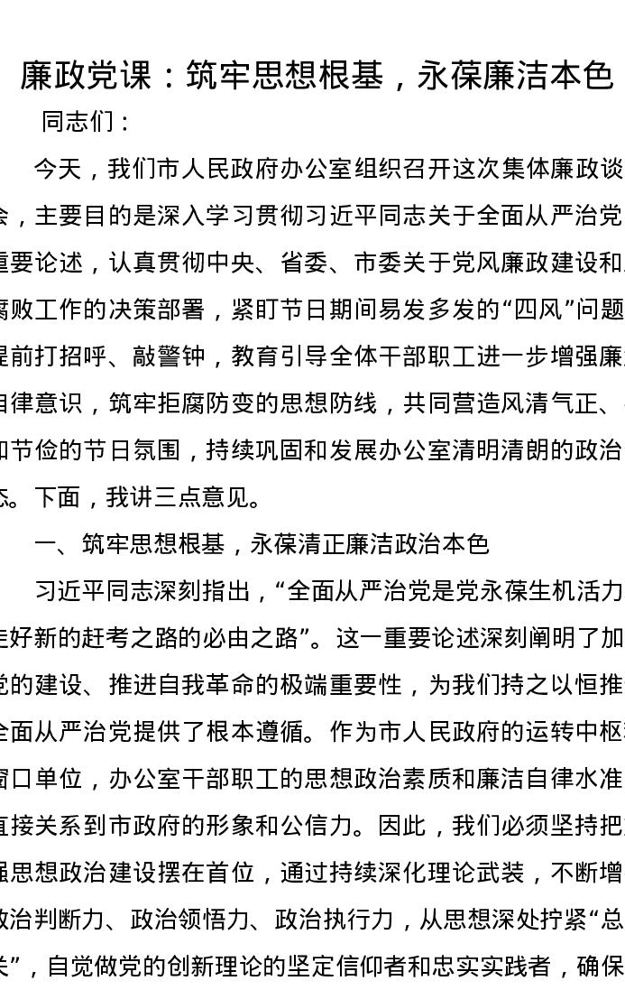 廉政党课讲稿:筑牢思想根基,永葆廉洁本色