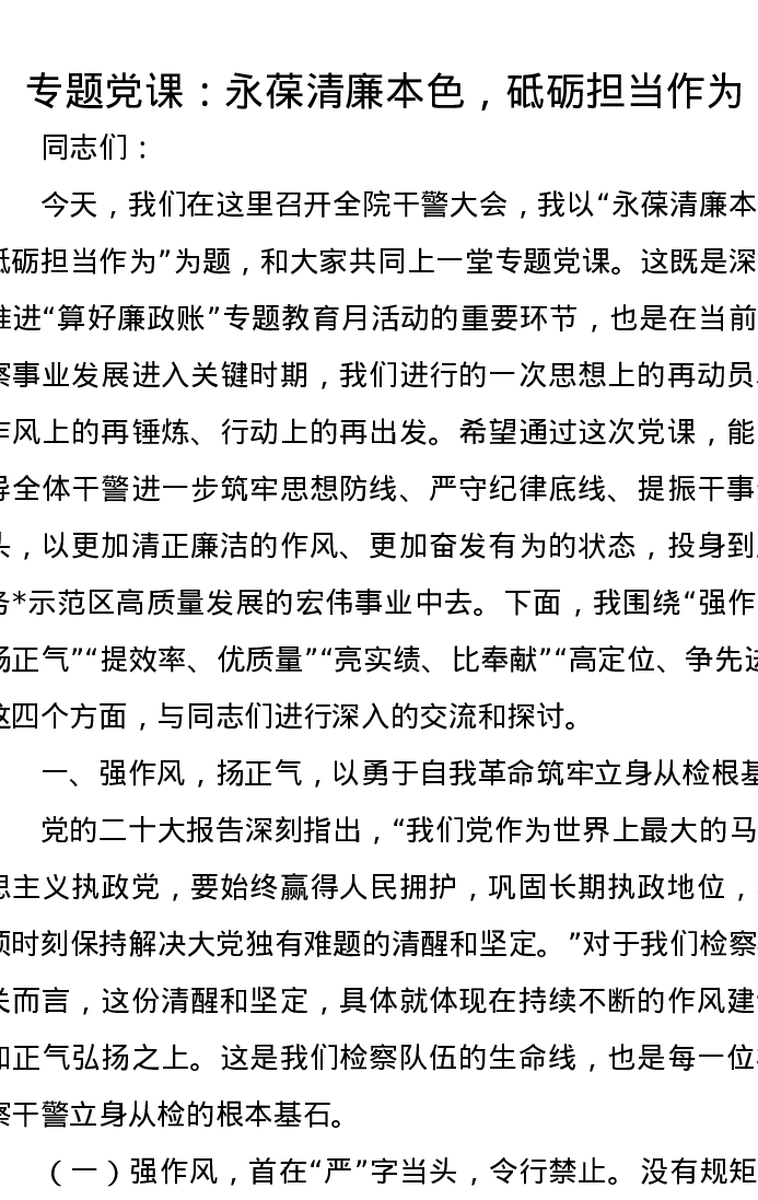 专题党课讲稿:永葆清廉本色,砥砺担当作为