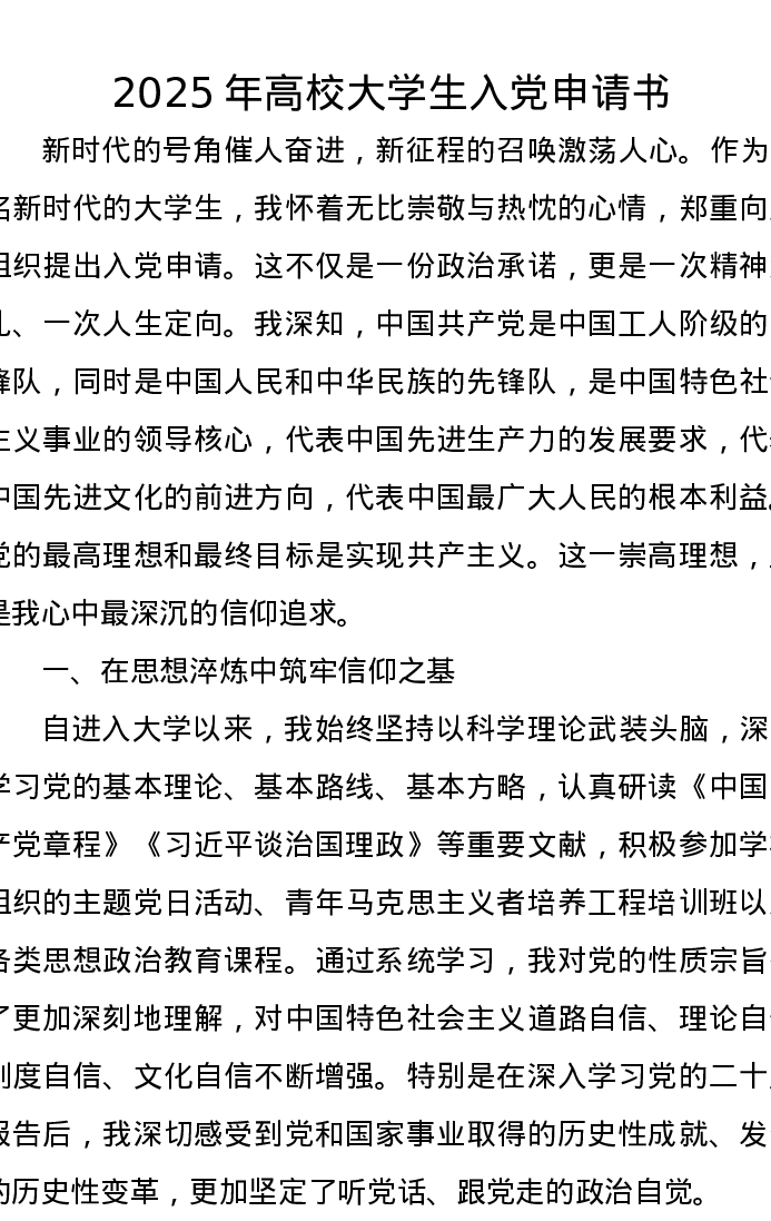 2025年高校大学生入党申请书
