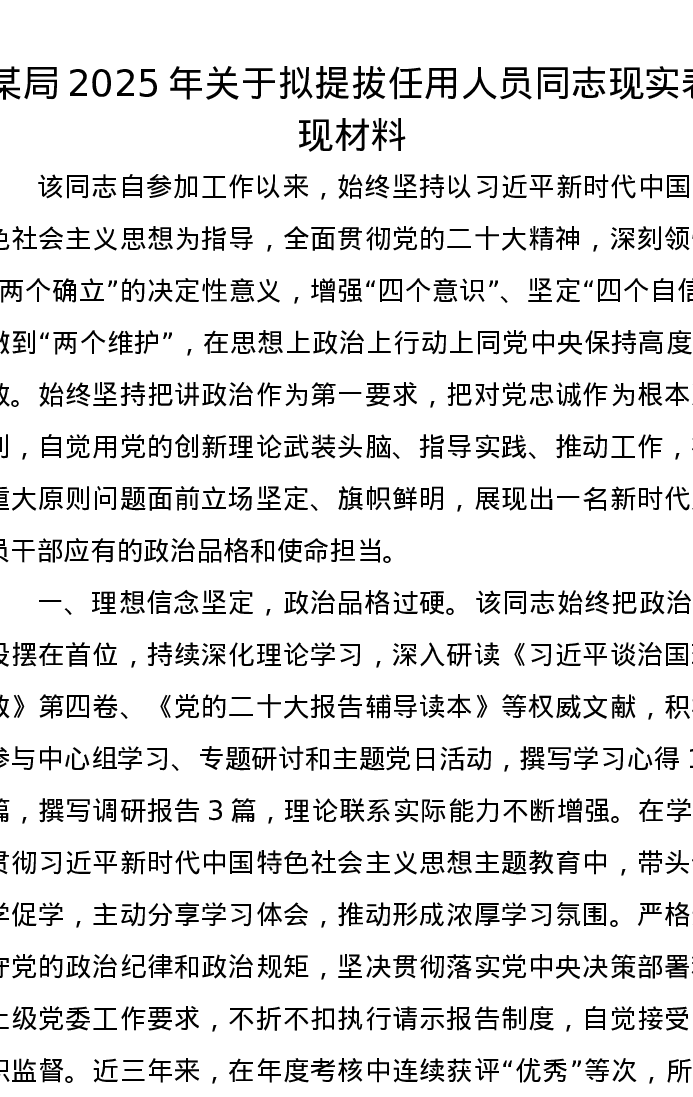 某局2025年关于拟提拔任用人员同志现实表现材料