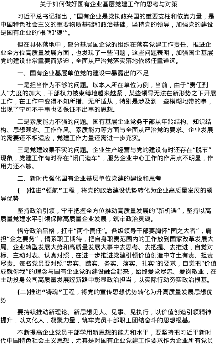 20220719关于如何做好国有企业基层党建工作的思考与对策