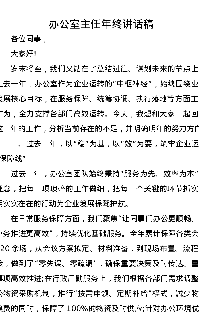 办公室主任年终讲话稿
