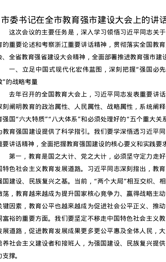 市委书记在全市教育强市建设大会上的讲话