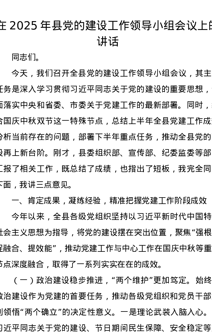 在2025年县党的建设工作领导小组会议上的讲话