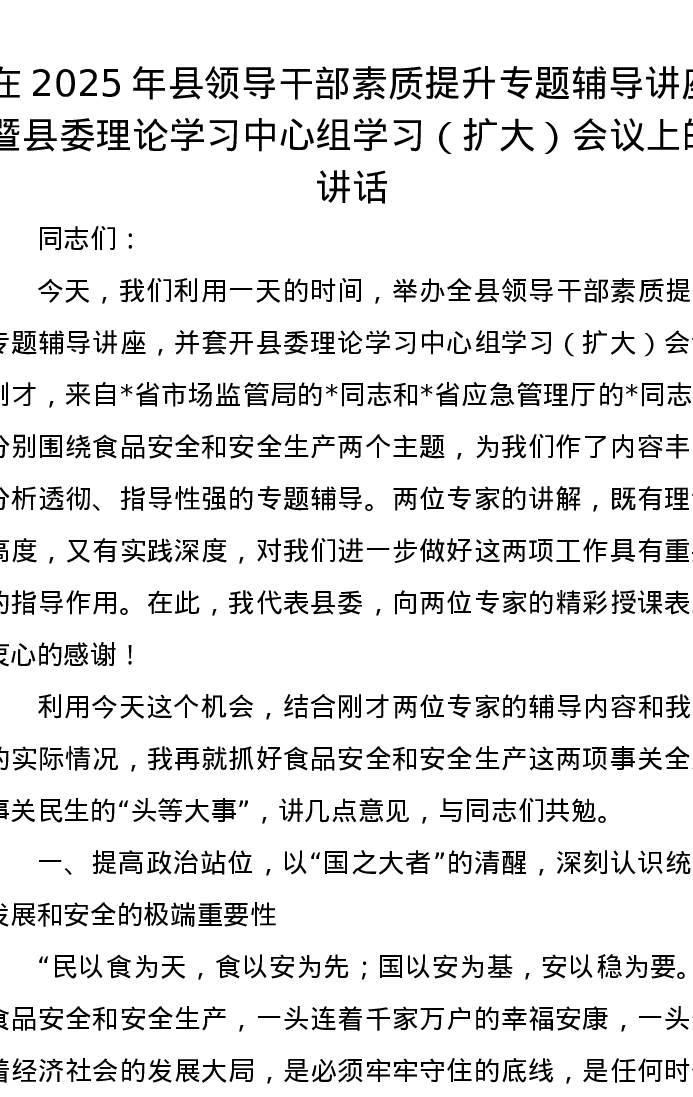 在2025年县领导干部素质提升专题辅导讲座暨县委理论学习中心组学习(扩大)会议上的讲话