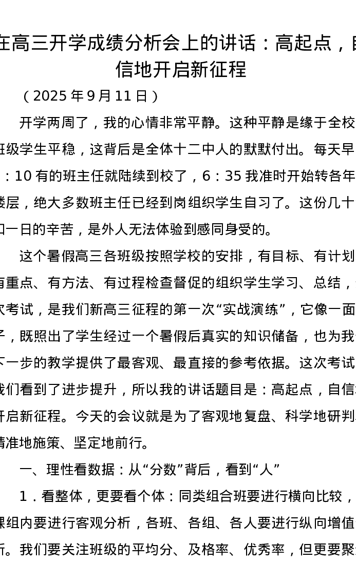 在高三开学成绩分析会上的讲话:高起点,自信地开启新征程