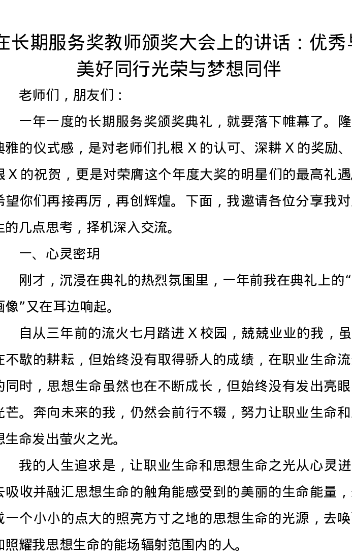 在长期服务奖教师颁奖大会上的讲话:优秀与美好同行光荣与梦想同伴