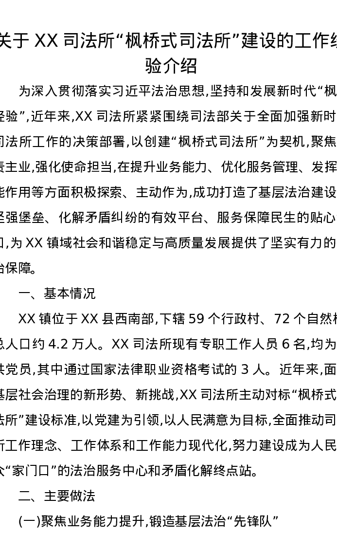 关于XX司法所“枫桥式司法所”建设的工作经验介绍