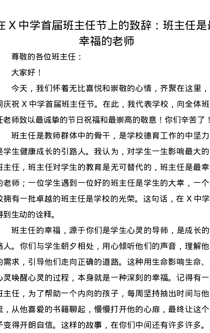 在X中学首届班主任节上的致辞:班主任是最幸福的老师