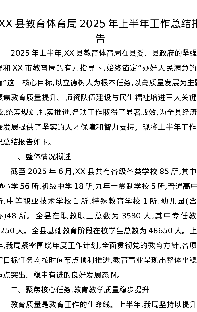 XX县教育体育局2025年上半年工作总结报告
