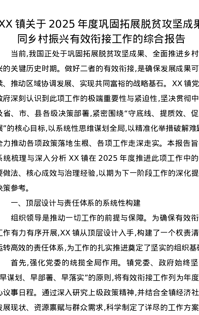 XX镇关于2025年度巩固拓展脱贫攻坚成果同乡村振兴有效衔接工作的综合报告