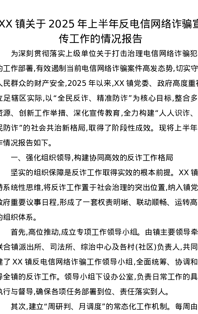 XX镇关于2025年上半年反电信网络诈骗宣传工作的情况报告
