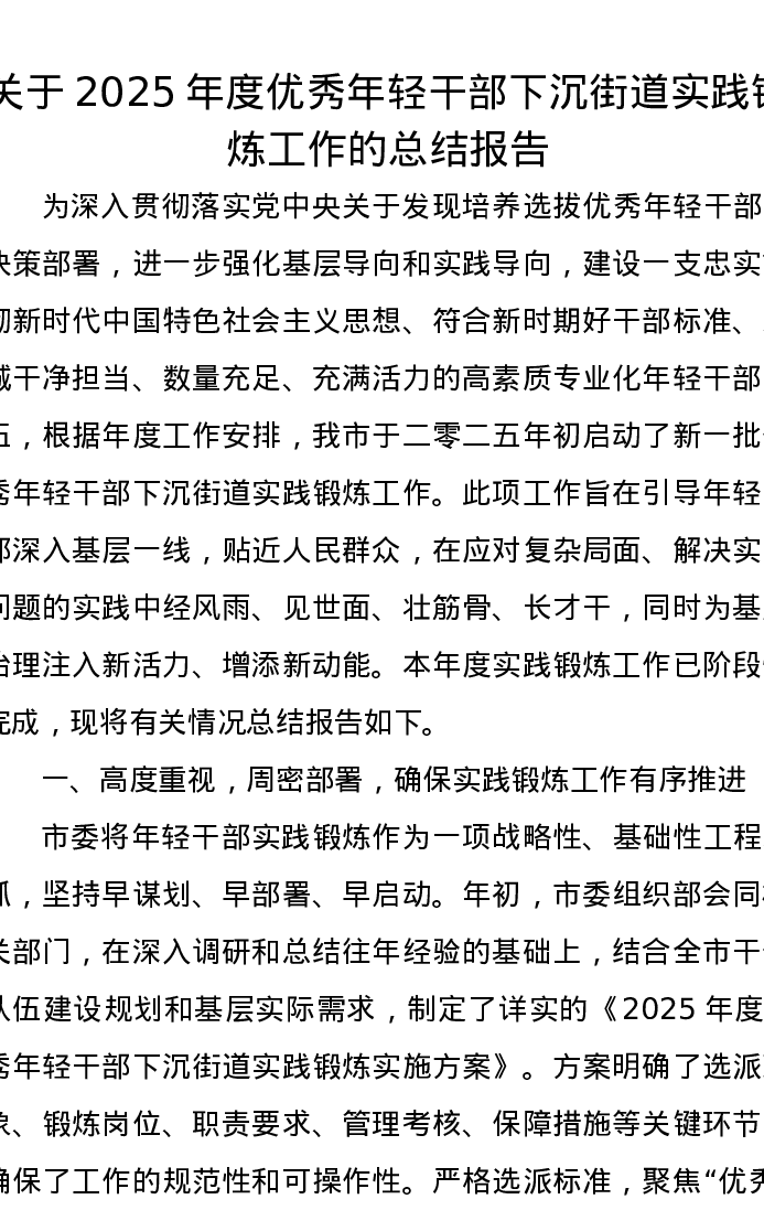 关于2025年度优秀年轻干部下沉街道实践锻炼工作的总结报告
