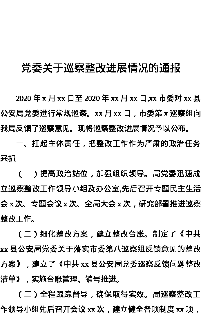 汇编:公安局巡察整改进展情况的通报(总结)7篇