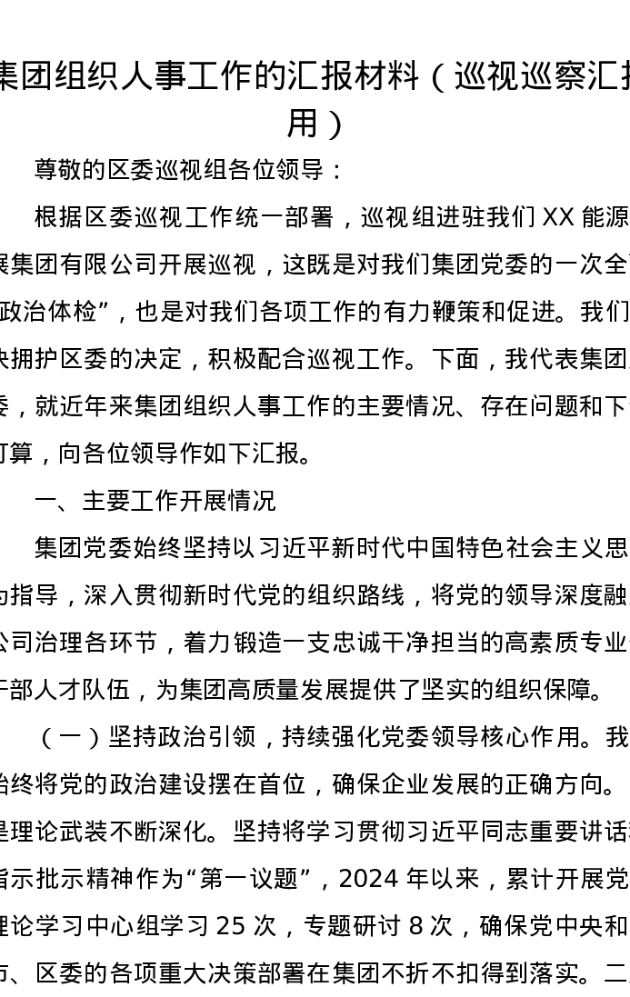 集团组织人事工作的汇报材料(巡视巡察汇报用)